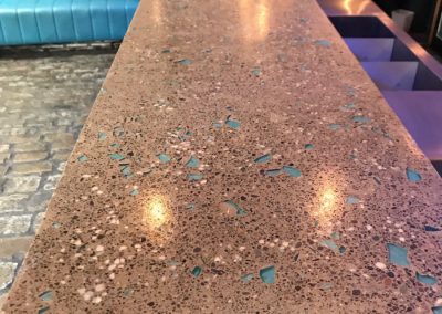 Our service can include a site visit, templating, design and installation. We can do a wide range of the natural concrete colours using aggregates from cool white through a variety of greys to black. In addition, we can achieve a multitude of other or client specified colours using pigments. We can finish in a number of ways such as polished, matt or exposed aggregates. The finished product is hygienic and non-
